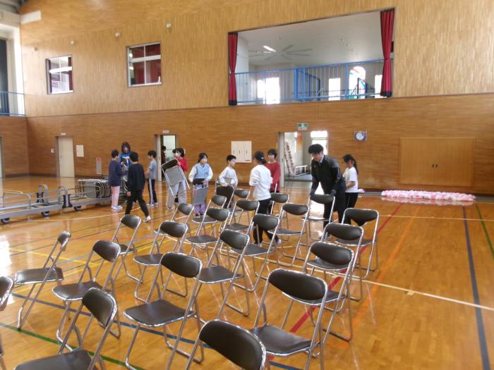 明日は、入学式です。5・6年生の皆さんが、入学式の準備を行ってくれました。