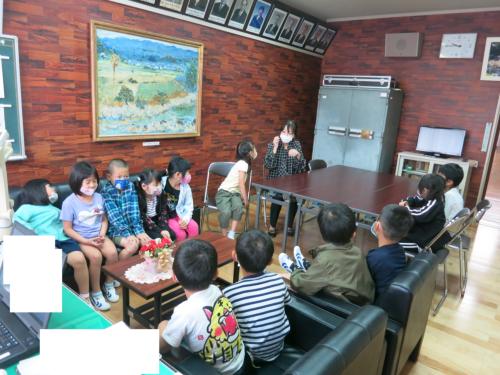かわいいお客さま 2校時目、校長室に12名のかわいいお客さまが訪ねてきてくれました。1年生の学校探検です。