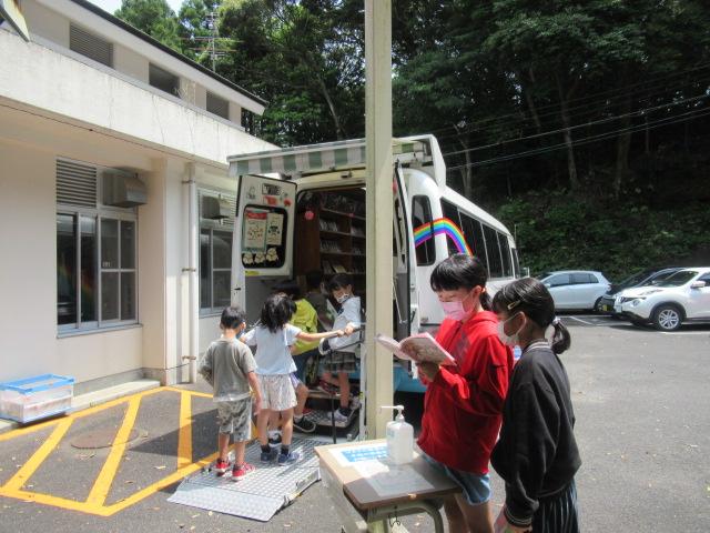 「はまゆう号」で、本を借りたよ 子供たちの大好きな「はまゆう号」の日です。