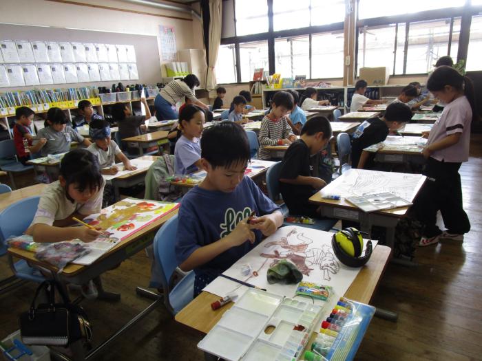 読書感想画を描いている真っ最中で、のびのびとした絵を描いていました。「芸術の秋」もいいもの…