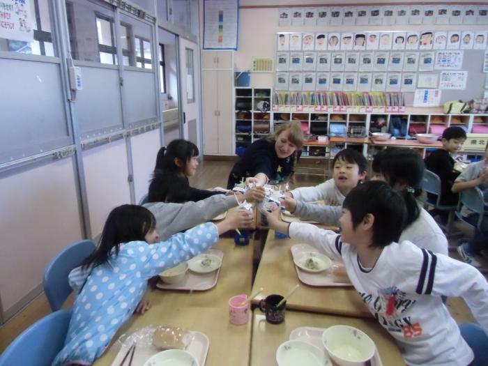 名札忘れ0の日(13回目) 12月15日は名札忘れ0の日でした。ALTのケイト先生も一緒にお祝いしてくれました。
