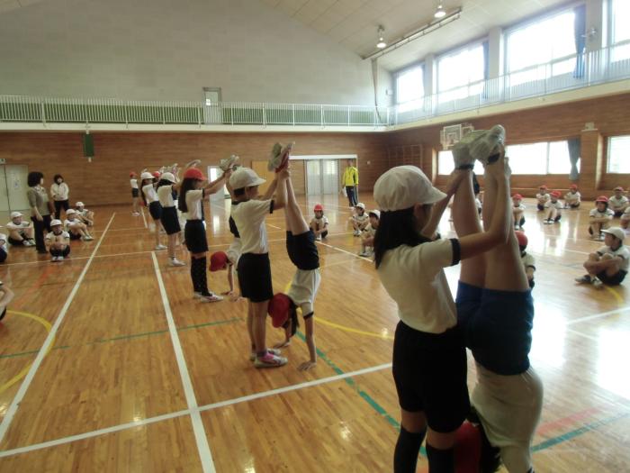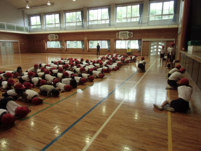 運動会練習(5,6年生組体操)   着々と運動会の練習が進んでいます。高学年は今年も組体操に取り組みます。今日は一人技と二人技の練習を中心に行いました。5年生の女子は、全員補助…
