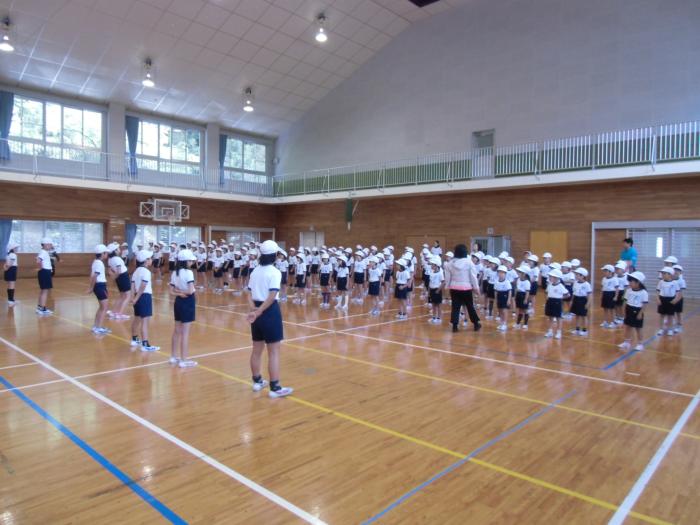 運動会全体練習   今日から本格的に運動会の全体練習がはじまりました。最初の練習は、入場行進からです。顔をあげること 手を肩まであげること ひざを高くあげること…
