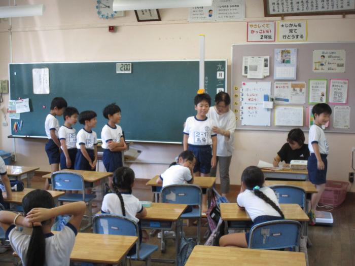 2年生 体位測定の時間です 2学期が始まって各学年体位測定を実施しています。