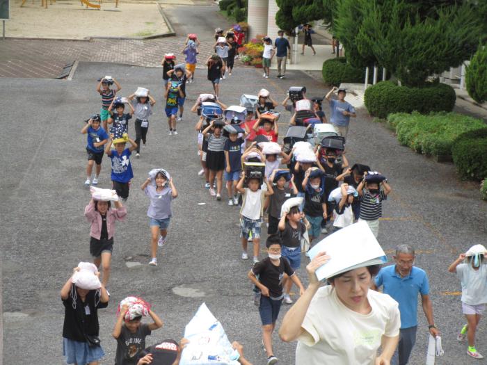 避難訓練 今日は地震に備えての避難訓練を実施しました。万が一に備えての訓練は100点を目指すことが大切です。今回は100点ではなかった児童もちらほら……
