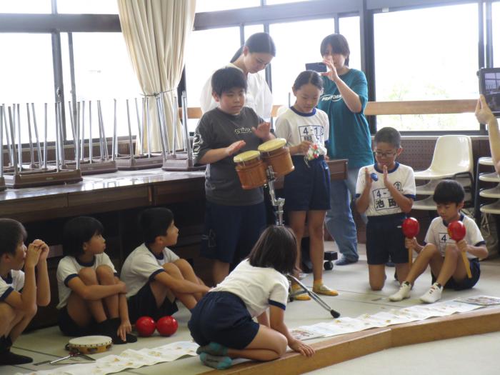 4年生 居住地交流の様子です 今日は4年生が校区内に住む特別支援学校のお友だちをお招きしての交流会を行いました。いろんな打楽器をリズムよくたたいて音楽を楽しみました。お別…