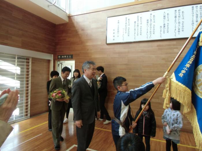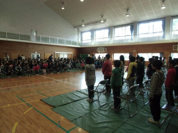 修了式・離任式   平成25年度の修了式がありました。それぞれの学年の代表児童が校長先生から修了証を受け取りました。その後、異動が決まった先生方の離任式がありま…