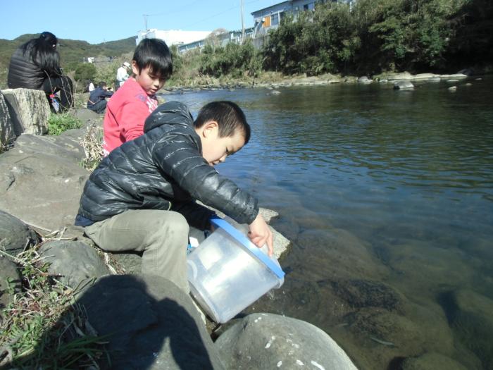 稚アユ放流体験活動(3年生)   本日3年生が、佐々川で稚アユの放流体験活動を行いました。子どもたちはまず、2万個の卵からたった1匹しか散乱できる親魚になれないアユから、自然…
