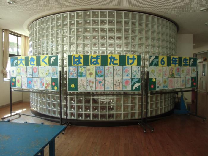 準備着々   卒業式に向けて、それぞれの学年が着々と準備を進めています。その一つが飾り付けです。階段の壁の掲示板には、6年生への感謝の気持ちが、温かい言葉…