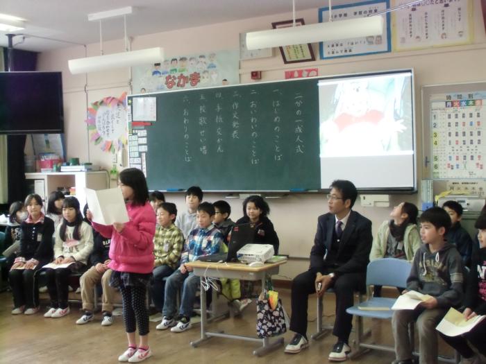 音読発表会(高学年)   今日の高学年の発表は大変素晴らしかったです。低学年の子どもたちから「見習いたい」という感想が聞かれました。5年生は「校風」6年生は「ふるさと…