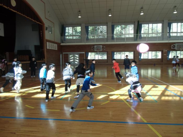 縦割り遊び   3回目の縦割り遊びがありました。6年生を中心に遊びを決めて、たっぷり30分間遊びを楽しみました。「5歩当て」をしているグループは、高学年が低…