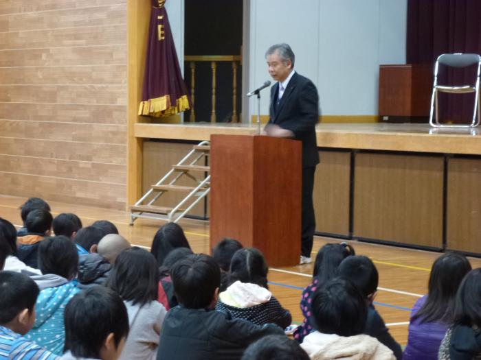 後期後半授業開始日 着任式に引き続き、全校朝会がありました。「4年に1度のイベントが2つもある平成26年です。1日1日を大切にした結果がこのイベントにつながって…