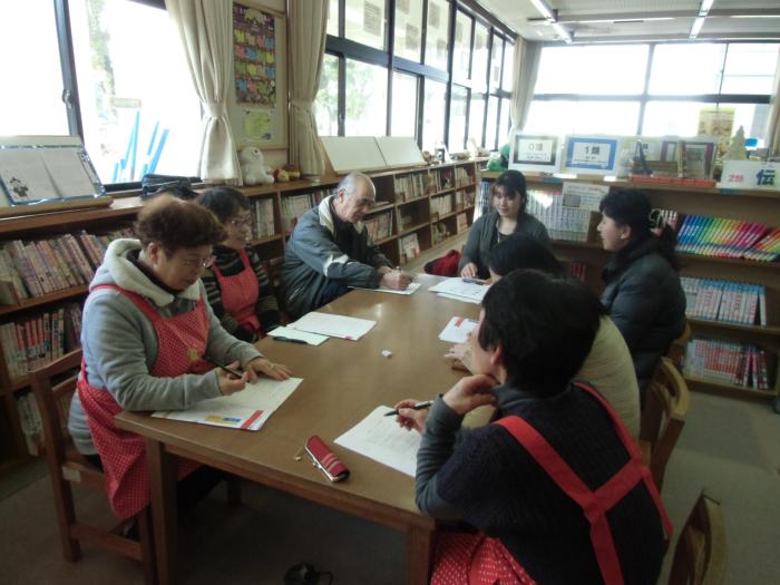 図書ボランティア顔合わせ会 地域や保護者の皆さんから募っていた「図書ボランティア」の顔合わせ会がありました。6名の方が参加してくださいました。学校司書から、図書館のこと…