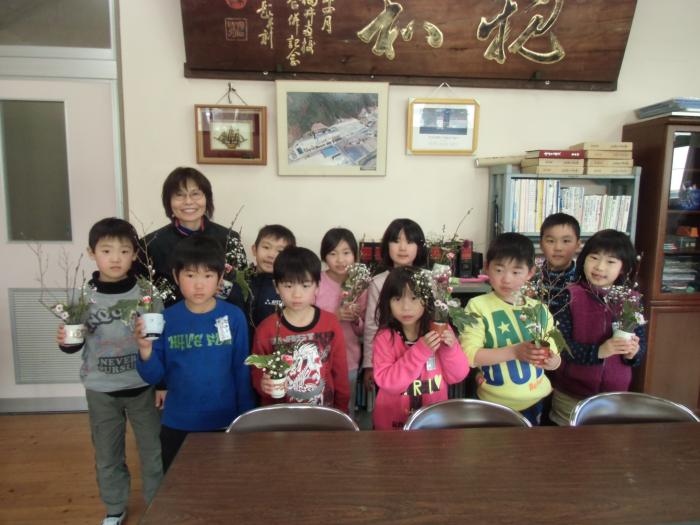 お花教室(1年生) 恒例のお花教室がありました。今日は冬の植物を生けました。1年生は、ねこやなぎの枝の柔らかさや実の不思議さに触れながら、思い思いに生けていまし…