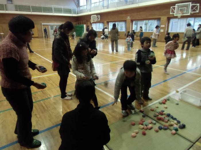昔遊び交流(1年生) 1月20日の授業参観のときに、11名の民生委員の皆さんと1年生が「昔遊び交流」を行いました。竹とんぼにめんこ、おはじきにお手玉と子どもたちに…