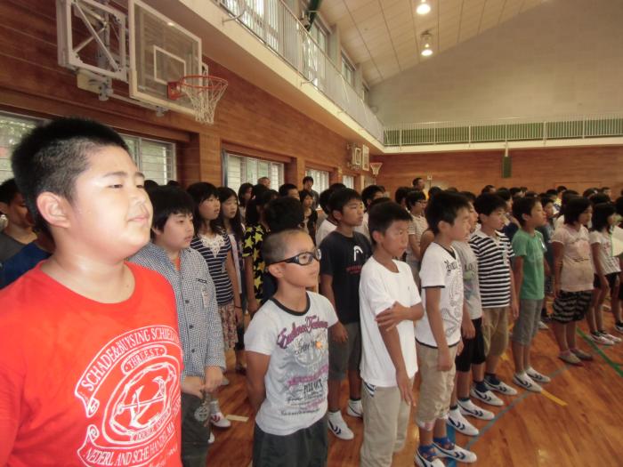 音楽集会 毎月1回音楽集会があります。「歌よ、ありがとう」が今月の歌でした。毎日各クラスから聞こえてくる歌声は、心を癒してくれます。今日は全員で体育館…