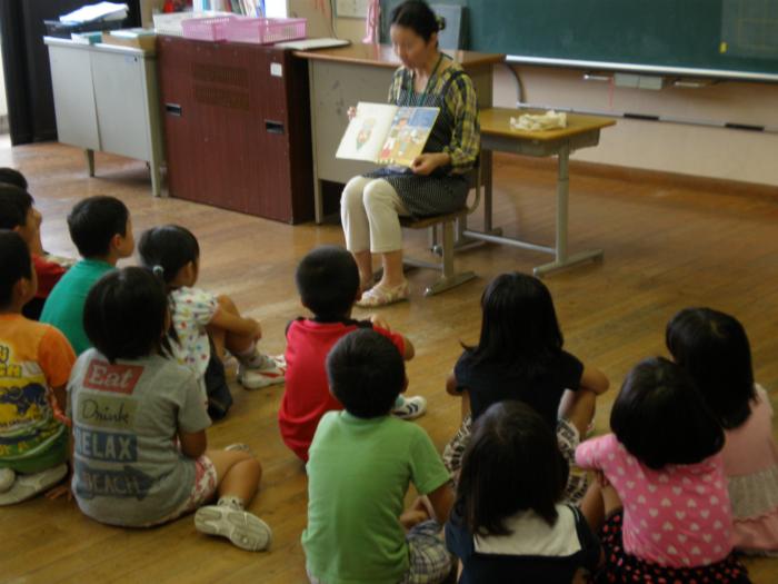 読書ボランティア「ピノキオ」さんが1年生に読み語りです。