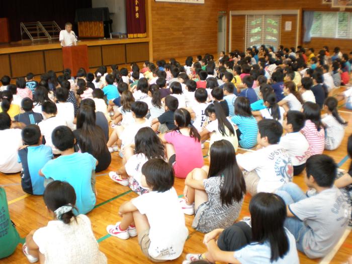 今日は7月の全校朝会 今日は7月の全校朝会でした。