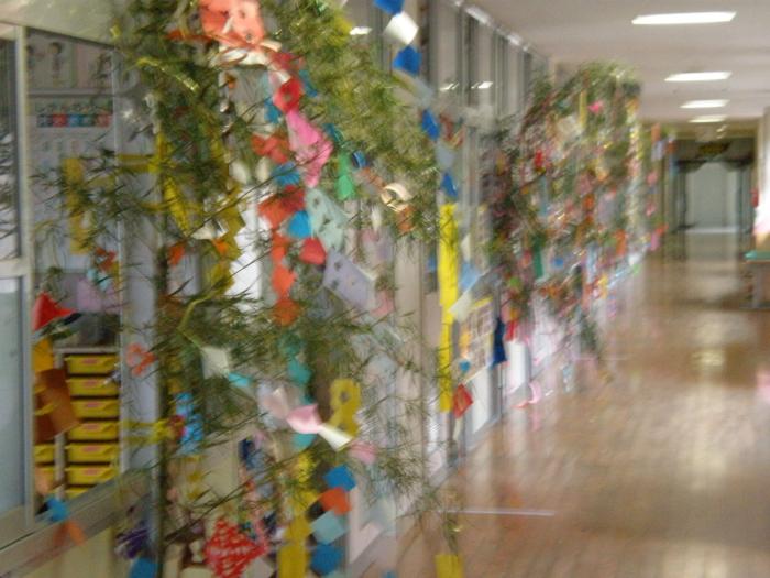 もうすぐ七夕、子どもたちの願いも一緒に並んでいます。