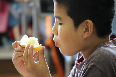 吉井のメロンです。 今日の給食は、地元農家の方が育てた吉井メロンです。