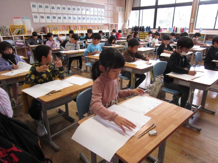 校内学力調査   今日は全学年で国語と算数の校内学力調査を行いました。これまでの学習の定着状況の確認です。