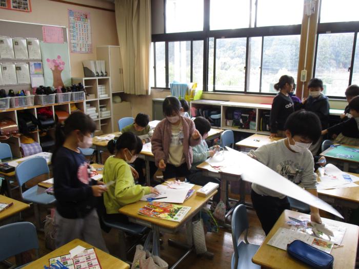 3年生 図工の時間   3年生の教室をのぞいてみると図工の時間でした。