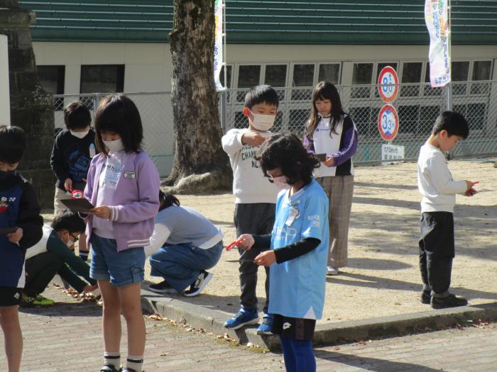 3年生理科の学習   児童玄関前には3年生が理科の学習を進めている姿がありました。