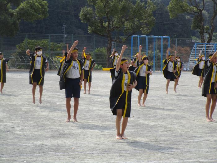 運動会では、かけ声を合わせ、力強く舞う姿を披露します。お楽しみに!
