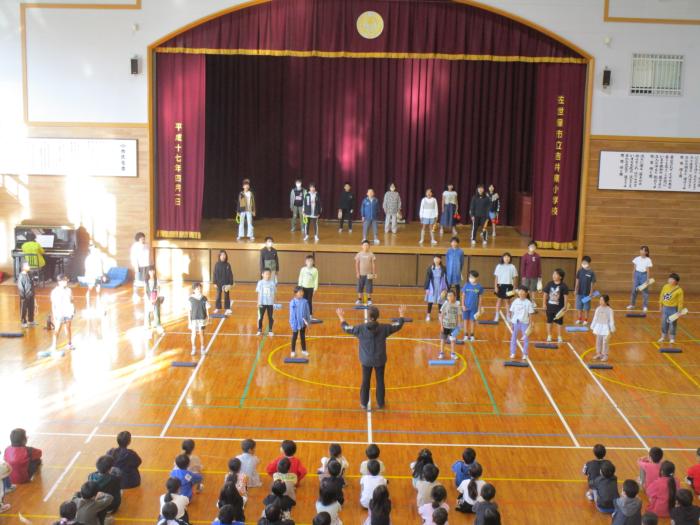 音楽発表会リハーサル 今日は朝から音楽朝会です。