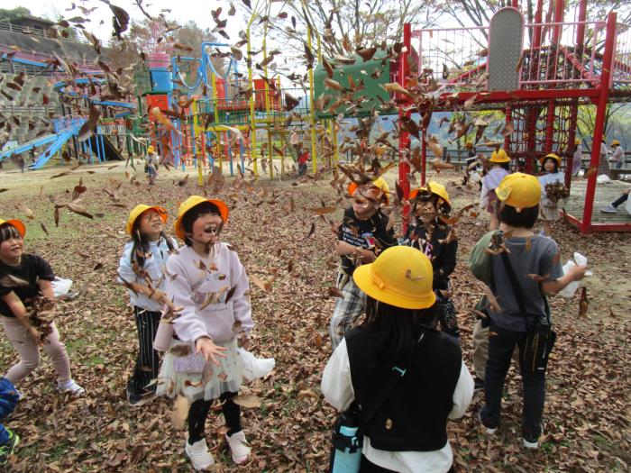 公園には落ち葉がじゅうたんのようにしきつめられていて、子どもたちは落ち葉を空に舞い上げ…
