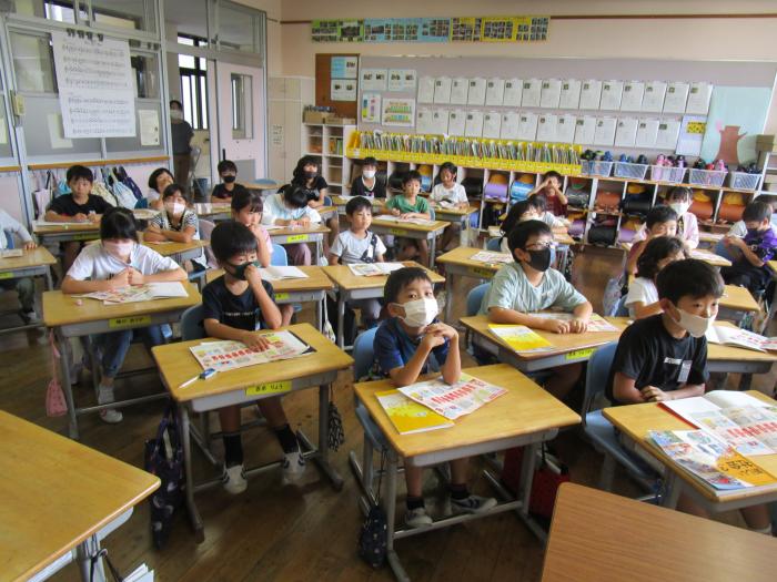 教育実習による研究授業 今日の2校時目は、5年1組で教育実習生による研究授業を行いました。