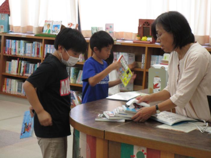 4年生 図書の時間 図書室をのぞいてみると、4年生が本を借りたり返したりしていました。