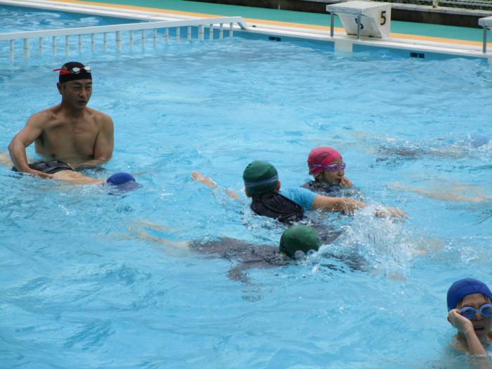 体育サポーター事業 今日は「体育サポーター事業」の一環として、水泳のインストラクターの先生をお招きして、泳ぎ方をレクチャーしていただきました。