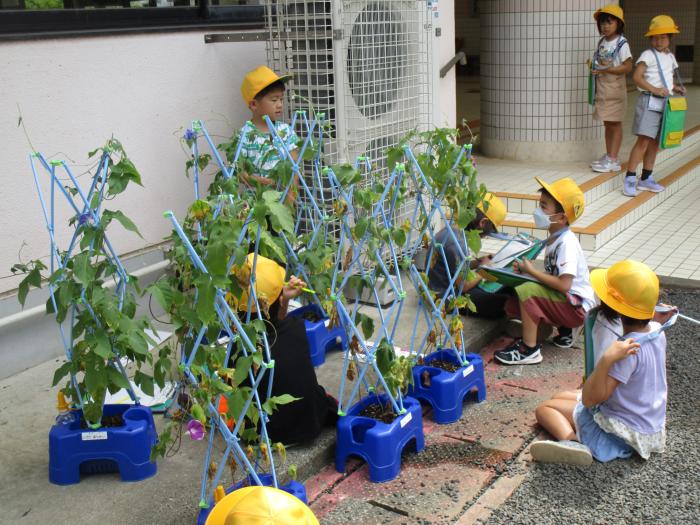 1年生 アサガオが大きくなりました 1年生が育てているアサガオが大きくなりました。