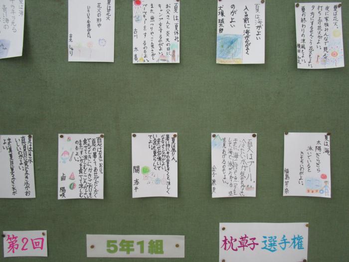 5年生 枕草子選手権 階段のおどり場に、5年生がつくった詩の作品が掲示してありました。