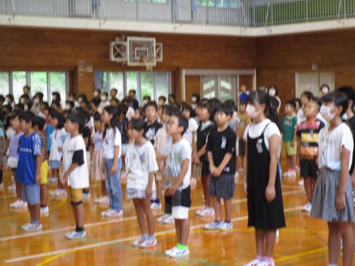 第1学期終業式 今日は「第1学期終業式」を行いました。一人一人の子どもたちがしっかりとがんばり切ることができた1学期となりました。