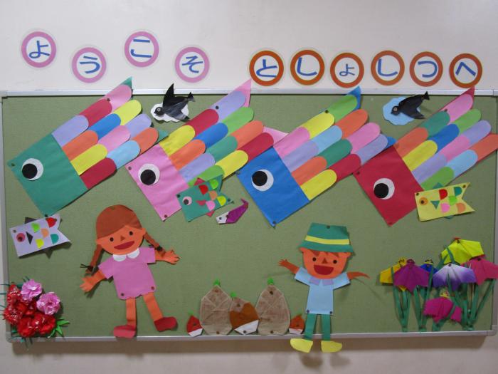 図書室の飾りです 先週、図書ボランティアの皆様が来校され、本校図書室の飾り付けをしてくださいました。