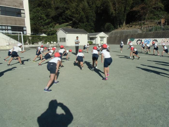 体育学習サポーター派遣授業 今日は、陸上の元オリンピック日本代表選手の田畑健児さんを講師に招いての体育の学習でした。今回は6年生と4年生を指導してくださいました。ウォー…