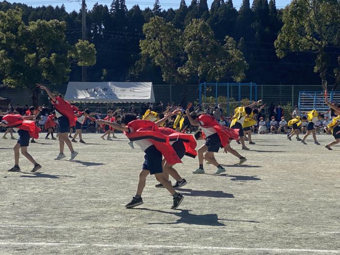 運動会 10月30日(日)雲一つない晴天に恵まれ、運動会が行われました。低・中・高学年で表現を披露しました。とても素晴らしい演技でした。かけっこや団…