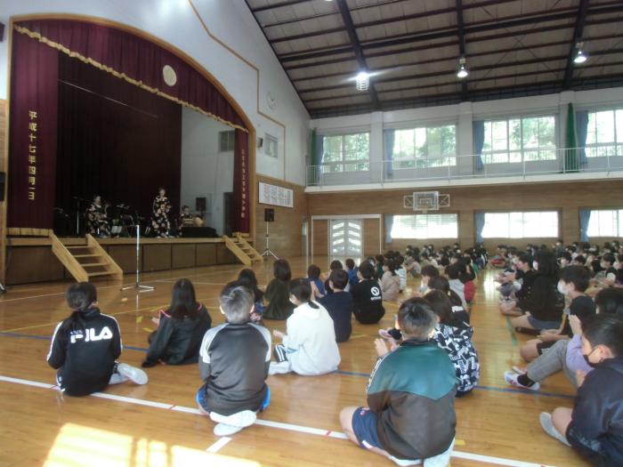 スクールコンサート 今日は、2〜3校時でスクールコンサートがありました。村上三弦道さんが津軽三味線を演奏してくださいました。また、三味線の歴史や作りなども、1年…