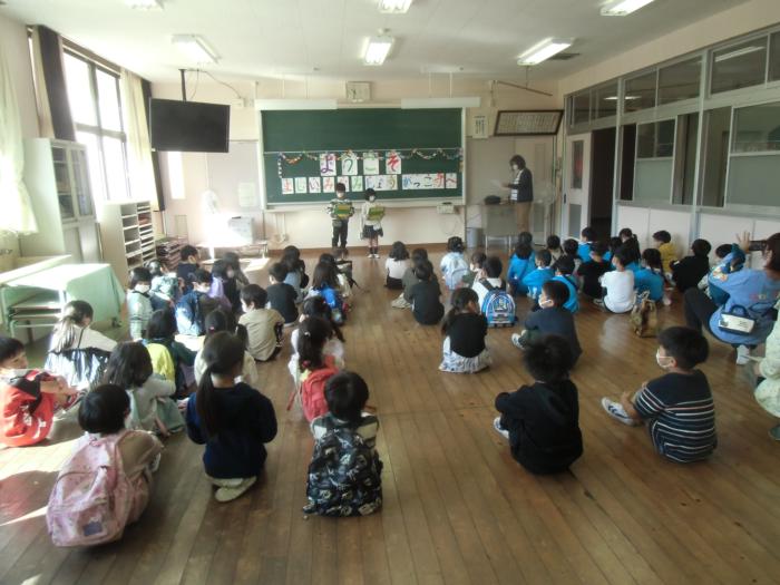 保幼小交流会 3校時に、1年生が吉井中央幼稚園、吉井北保育園にじいろ保育園の年長さんを迎え、交流しました。学校を案内したり、学校の紹介を行ったりしました。…
