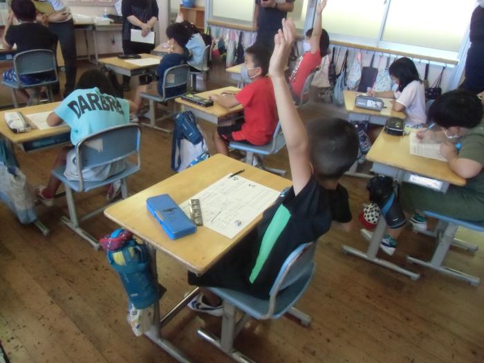 研究授業 3年2組で算数科「あまりのあるわり算」の授業がありました。