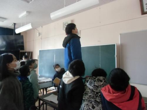 理科の実験(4年生) 4年生の理科の実験の様子です。子どもたちが、教室に吊り下げた温度計の目盛りを熱心に読んでいます。温度計は、1.天井に近いところ、2.床に近い…