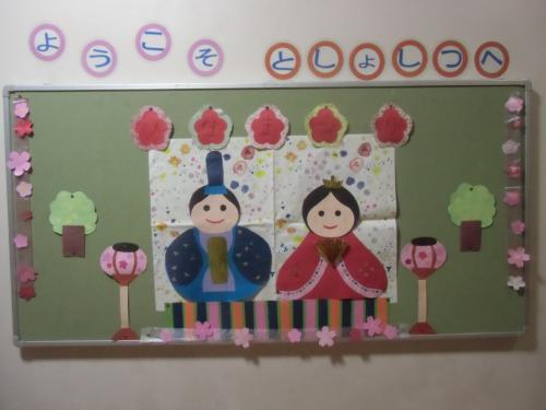 図書室掲示(ひな祭り) 図書室の掲示が新しくなりました。