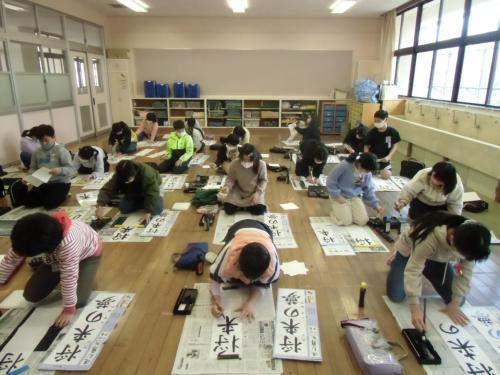書き初め 5年生と6年生が、書き初めに取り組みました。