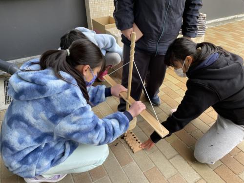 「火おこし体験」「勾玉作り」(5年生) 福井洞窟ミュージアムにおいて、5年生が「火おこし体験」と「勾玉作り」に挑戦しました。昨日は1組「勾玉作り」2組「火おこし体験」、今日が