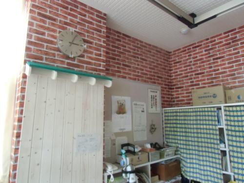 冬休み期間を利用して、管理員の福島さんが、レンガ風の壁面に仕上げてくださいました。また、掲示板(左側…