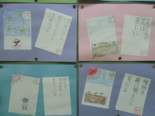手作りカルタ(3年生) 3年生の子どもたちによる手作りカルタです。一つ一つが実に楽しく、味わい深いです。国語の時間に作りました。これを使って、みんなでカルタ大会も楽…