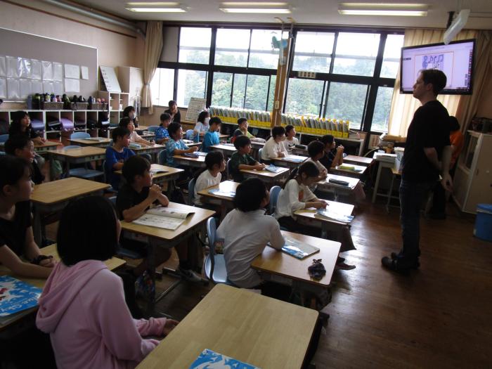 外国語の学習の時間です 5年生の教室から「SCIENCE!」という声が聞こえてきました。外国語の学習でダニエル先生といろんな教科の英語の発音を練習していました。たく…