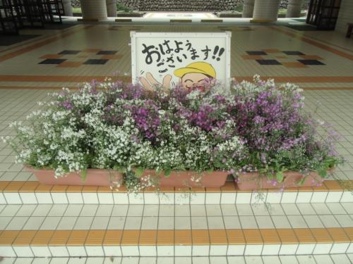 花がお出迎え 本校の玄関には、美しい花のプランターが